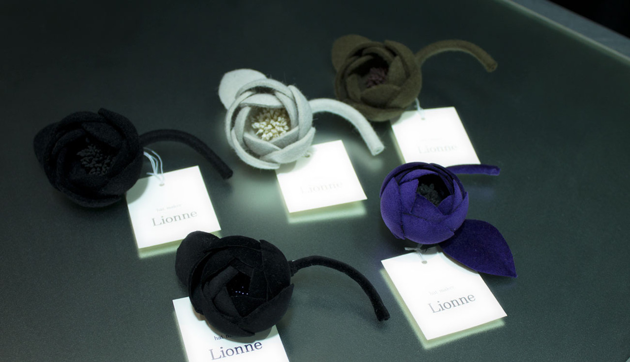 春夏好評いただいた、Lionne の秋冬新作帽子に続いてコサージュをご紹介。