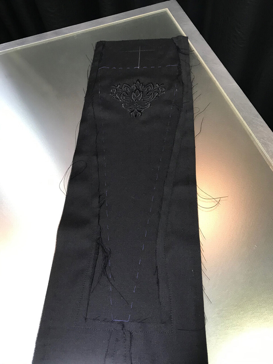 2021年01月03日 新作Xドレスをご紹介します。 MASHA(マシャ) / Naoko.Komatsu Couturiere (クチュリエール) デザイナーのKomatsu です。本日2本目のブログです! 昨年末の最後に完成した新作Xドレスをご紹介します。年末年始のメインディスプレーに飾りたくて、アトリエスタッフ全員で協力して製作しました。生地は loropiana Italy のバージンウールを選びました。ウエストラインをしぼり、スカート部分のフレアをたっぷりと贅沢にとったボリュームのあるロングワンピースです。Xラインのカットディディールが目を惹きます。袖のギャザー・Vカットカフス・上品なへちま衿、フロントのくるみボタン、そして後身頃、袖、衿に手刺繍を施しました。裁断前に手刺繍を施しました。後ろ身頃Vカットカフス31日メインディスプレーへ。とても気に入ってます!お問合せは、TEL 0357261635 又はmaster@masha.co.jp まで。 水曜定休 インスタグラム始めました。https://www.instagram.com/mashanaokokomatsu/Komatsu Small Episode今回の刺繍はEcole Lesage Paris で学んだアトリエスタッフが施しました。手刺繍ならではの暖かみのある凸凹感が出ていると思います^^そして、年末年始にディスプレイをご覧になられた方に少しでも美しいと思って頂けたらと 製作したこちらのドレス。本日旅立っていきました! ありがとうございます。 タグ :#高級婦人服#自由が丘#Xドレス#手刺繍 「【 レギュラー 】 regular design」カテゴリの最新記事 < 前の記事次の記事 >