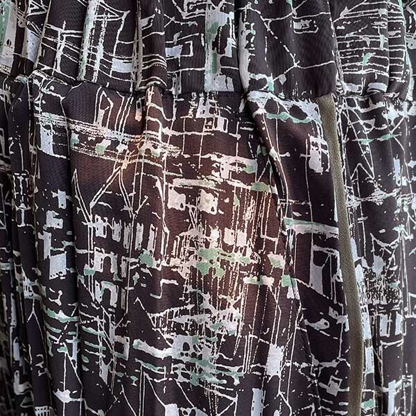 ヨーロッパの街並みを思わせる手書き風のプリント生地は、微光沢の薄くて透けにくい素材。