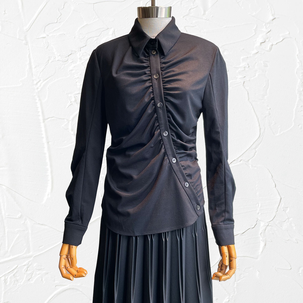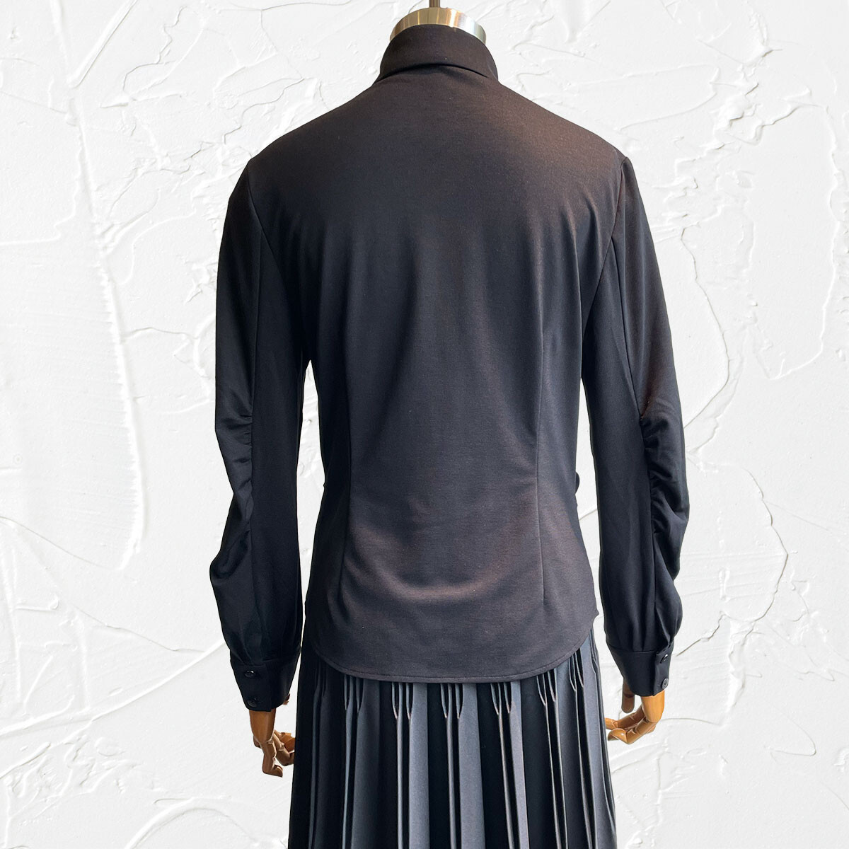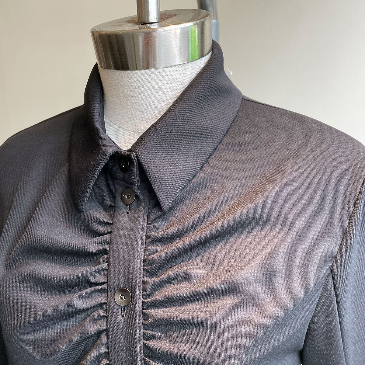 今日はストレッチ素材で制作した新作ギャザーブラウスが完成しました。