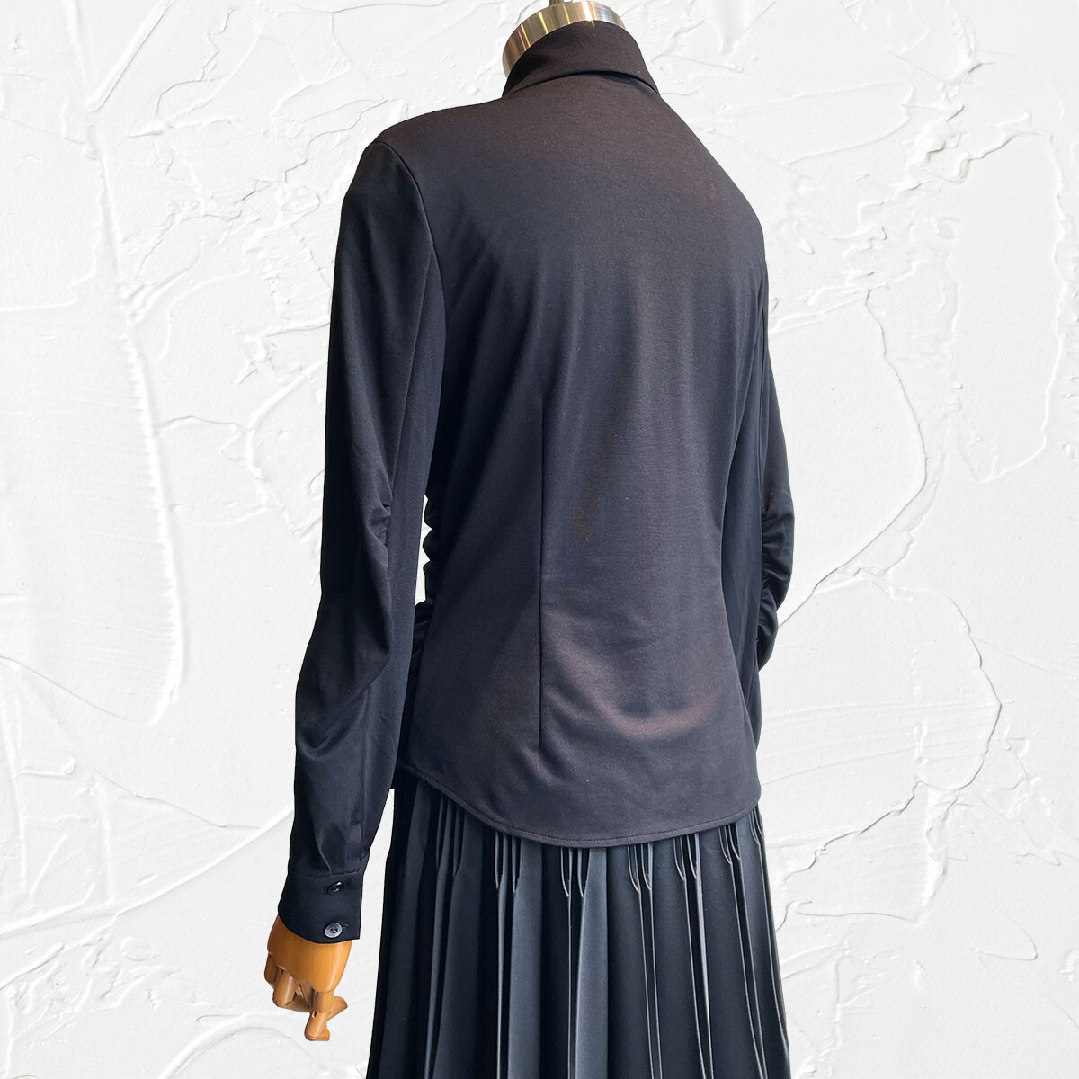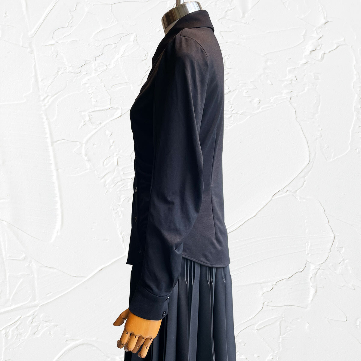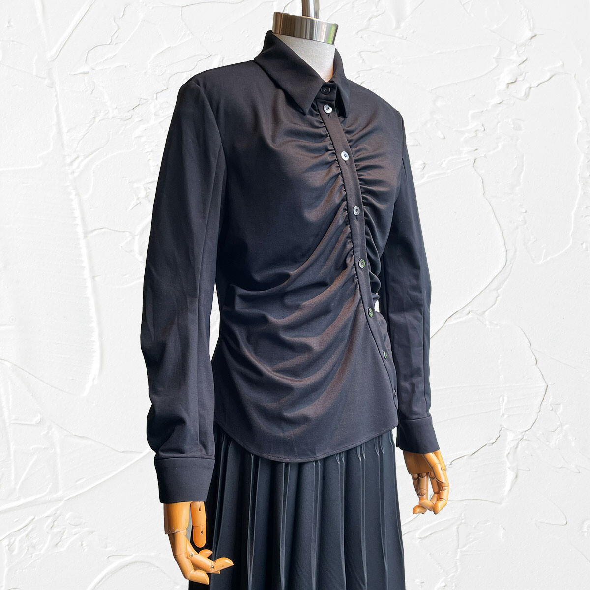 今日はストレッチ素材で制作した新作ギャザーブラウスが完成しました。