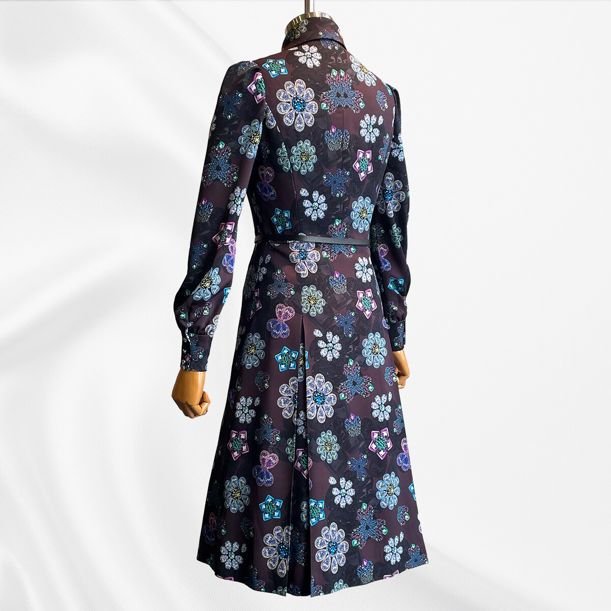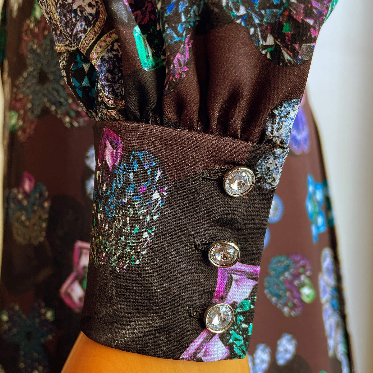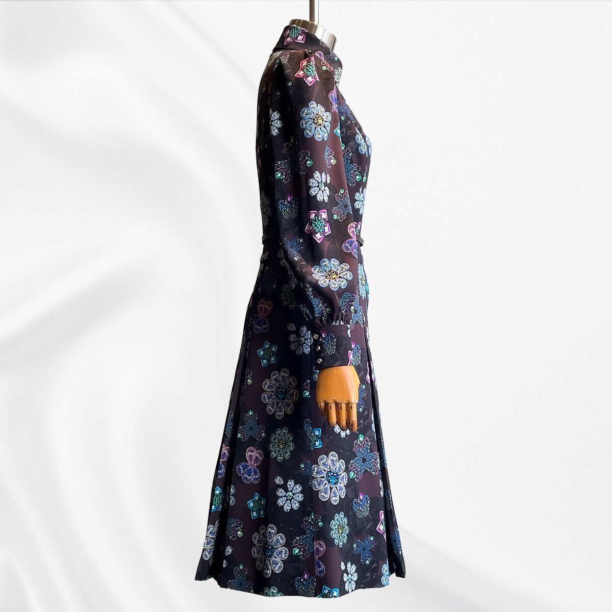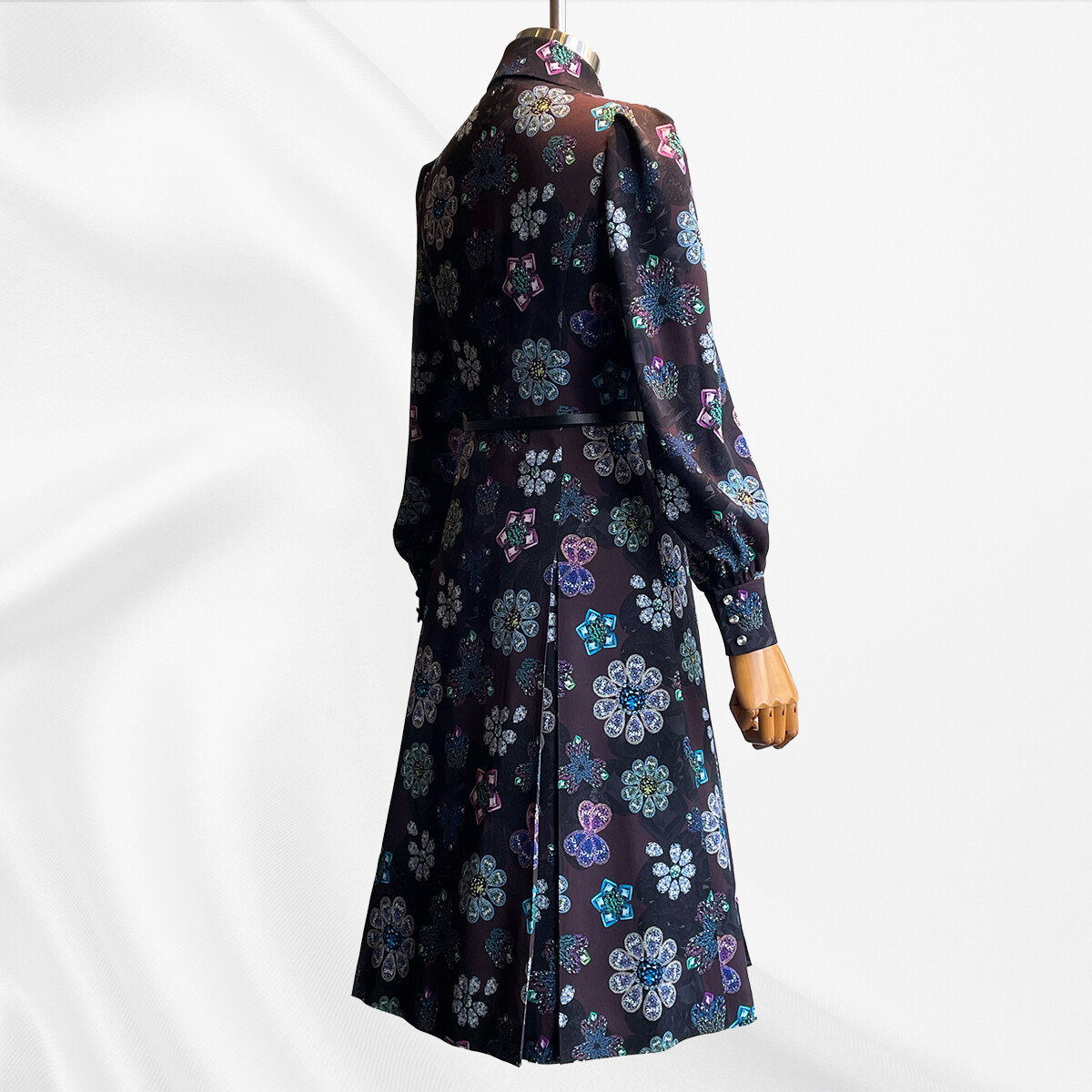 宝石を散りばめたようなプリントの、極上のシルクストレッチ生地。