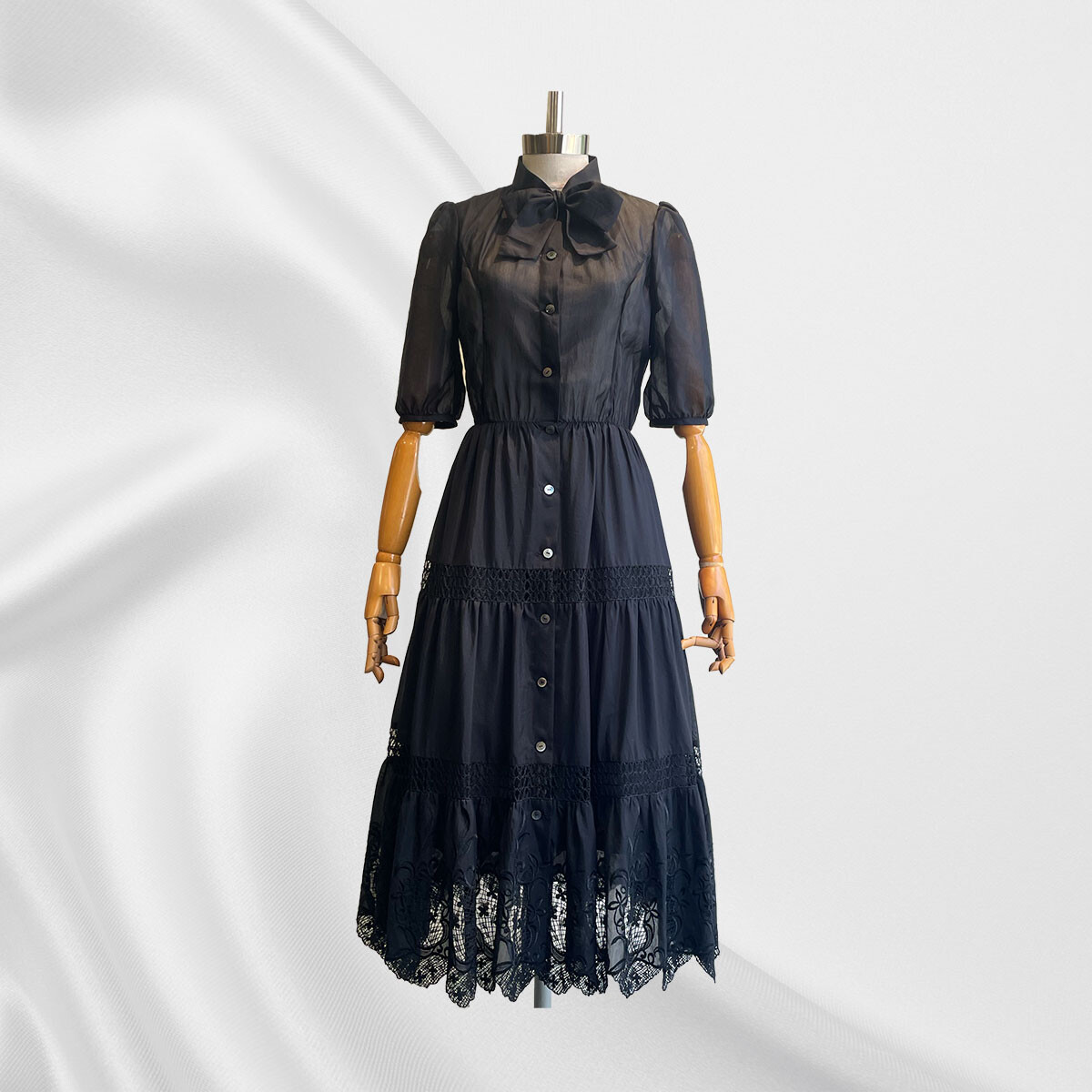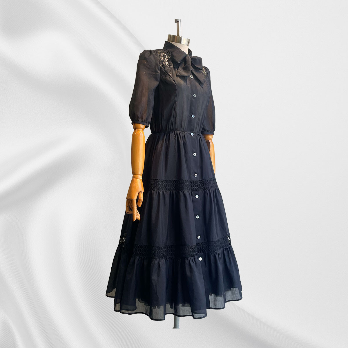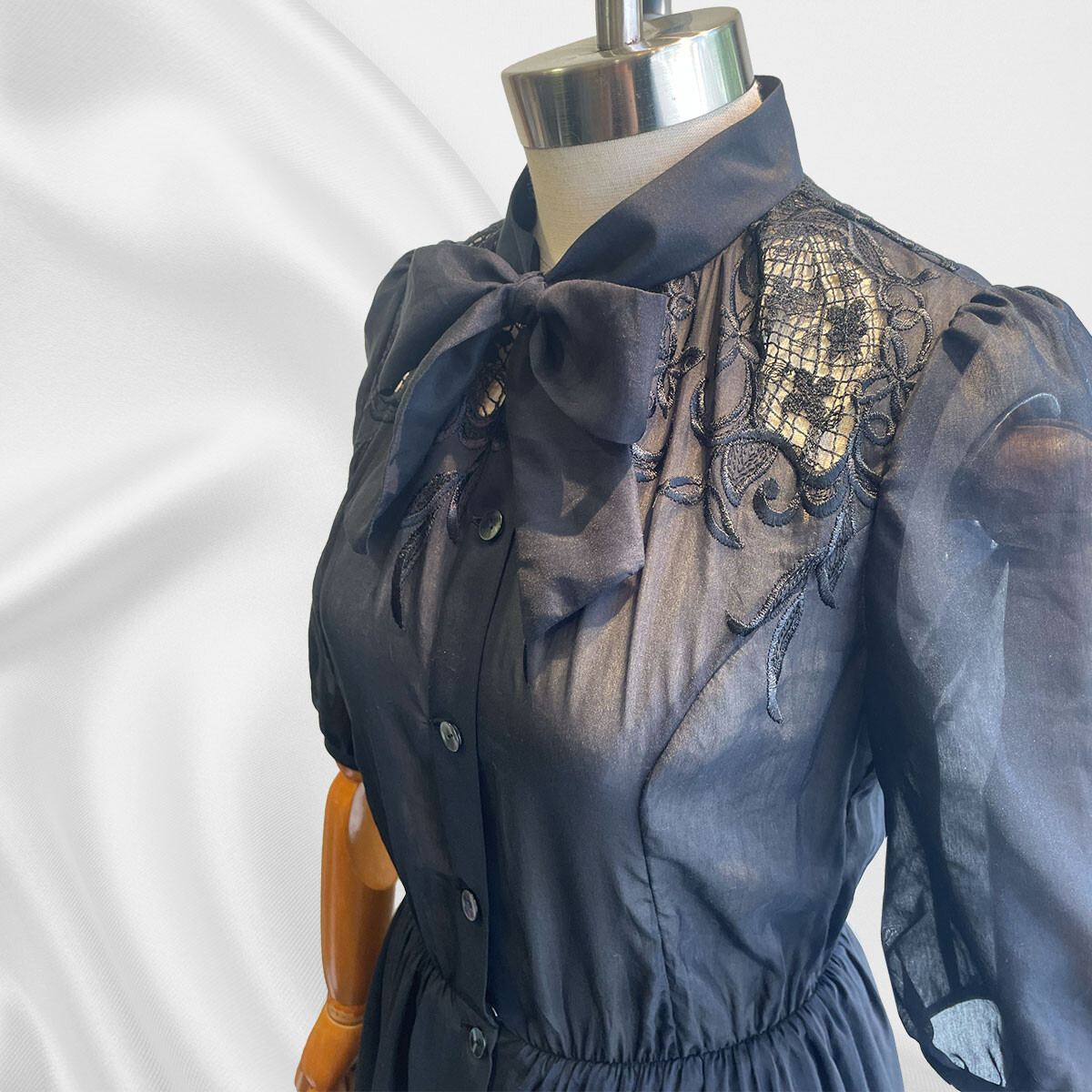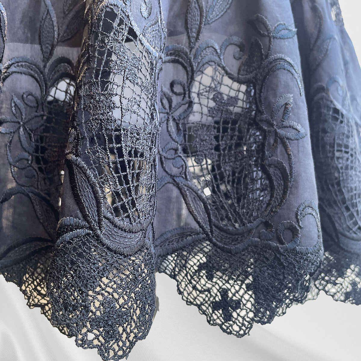 刺繍が施されたコットンシルクの薄い透ける生地で制作しました。