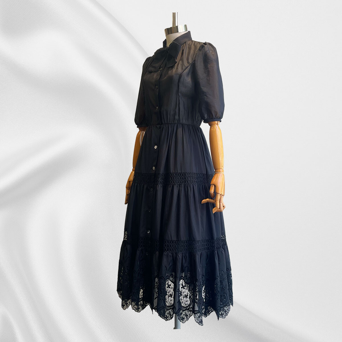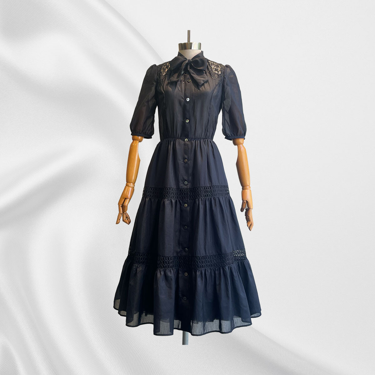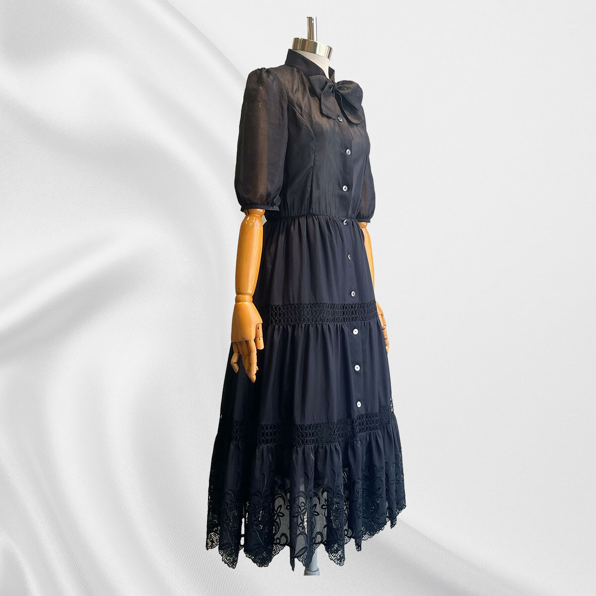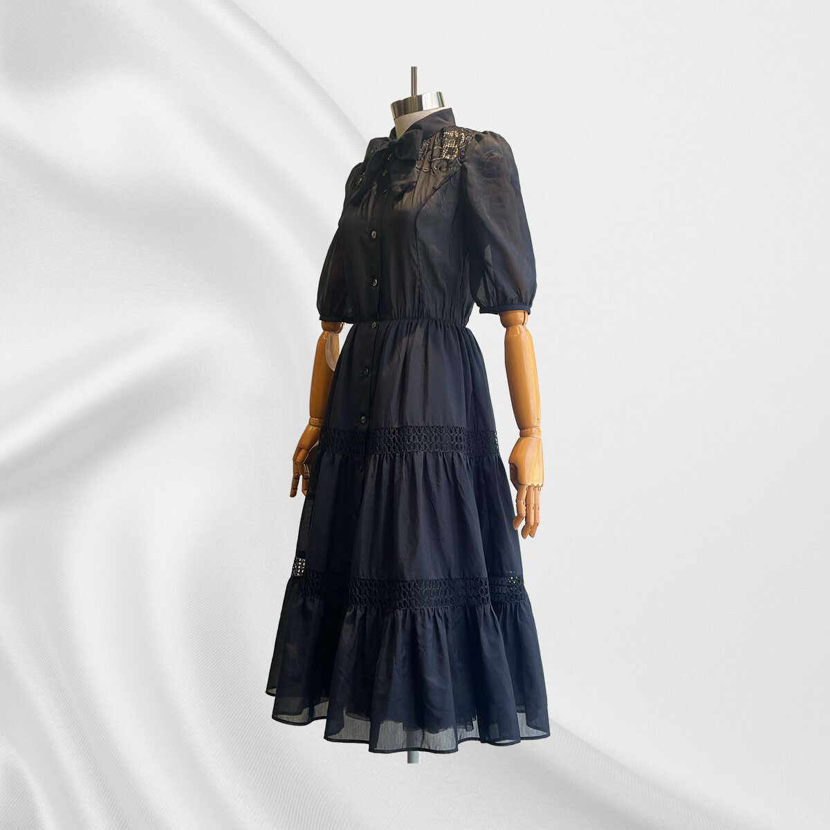 刺繍が施されたコットンシルクの薄い透ける生地で制作しました。
