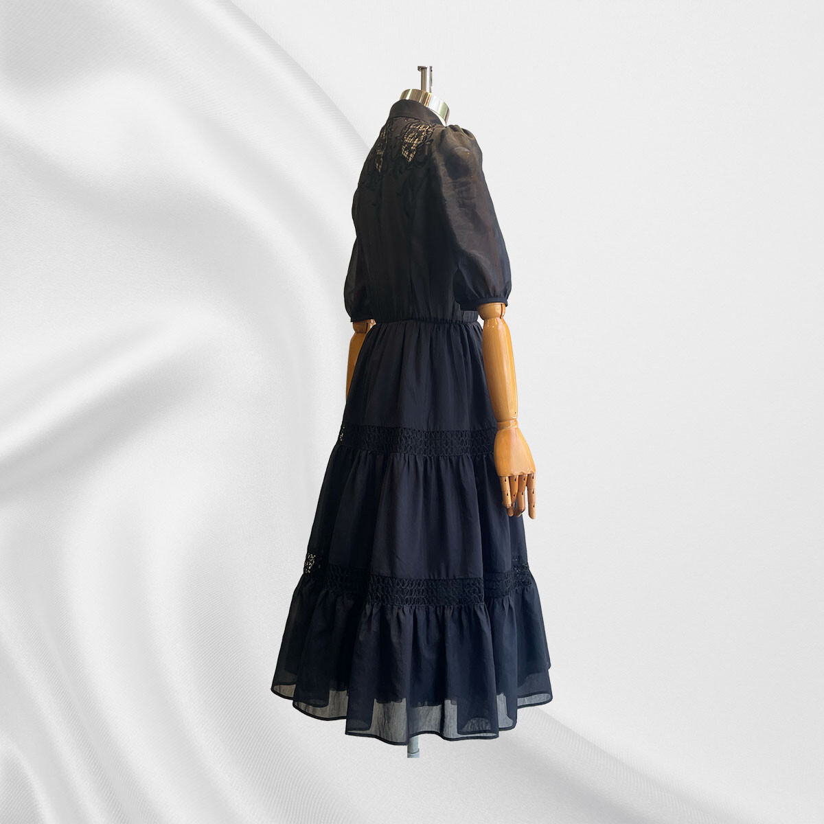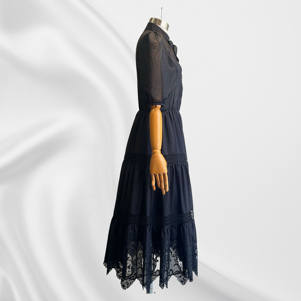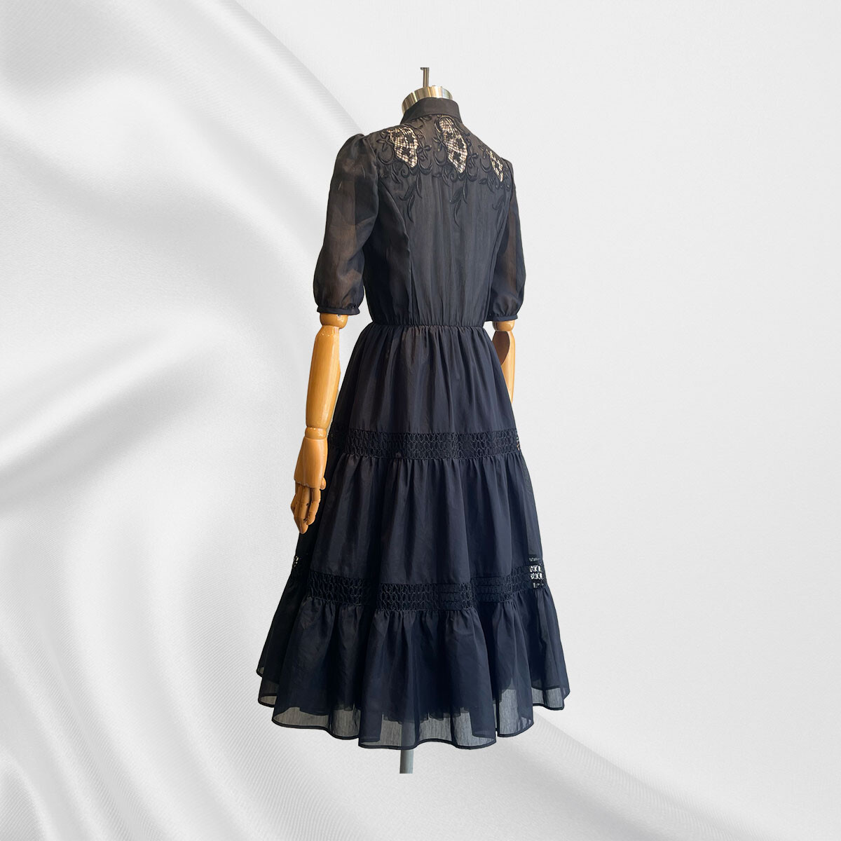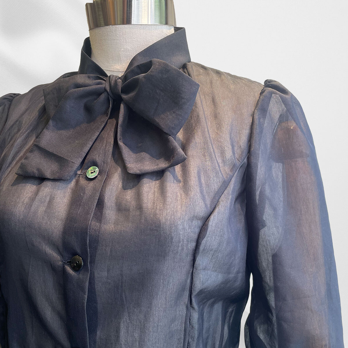 刺繍が施されたコットンシルクの薄い透ける生地で制作しました。