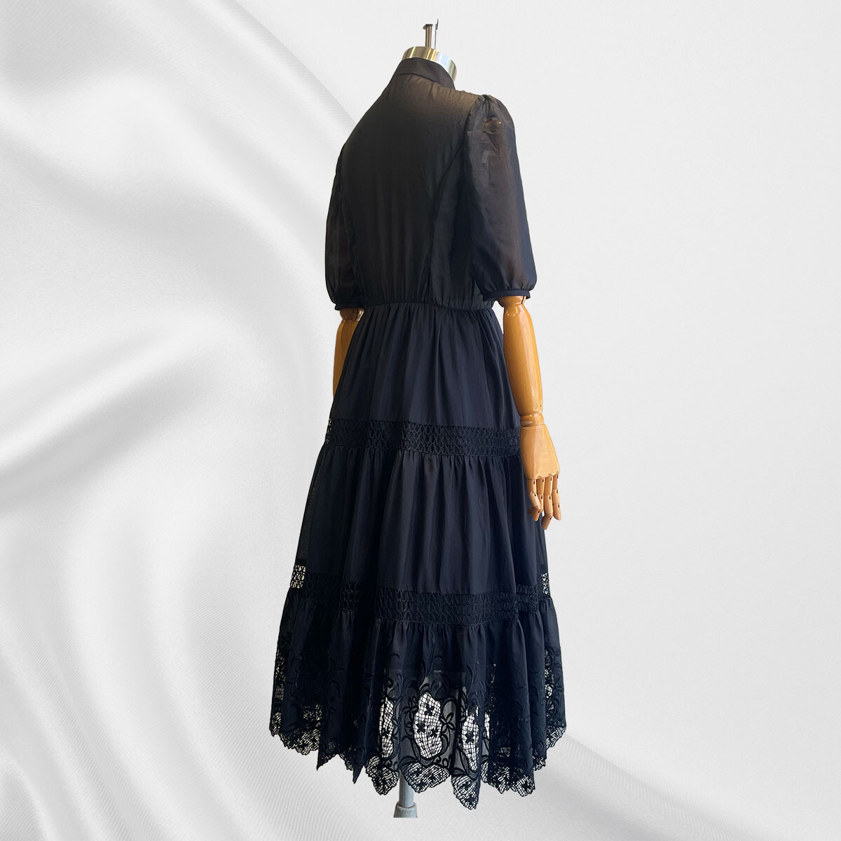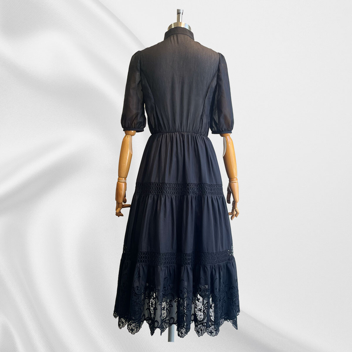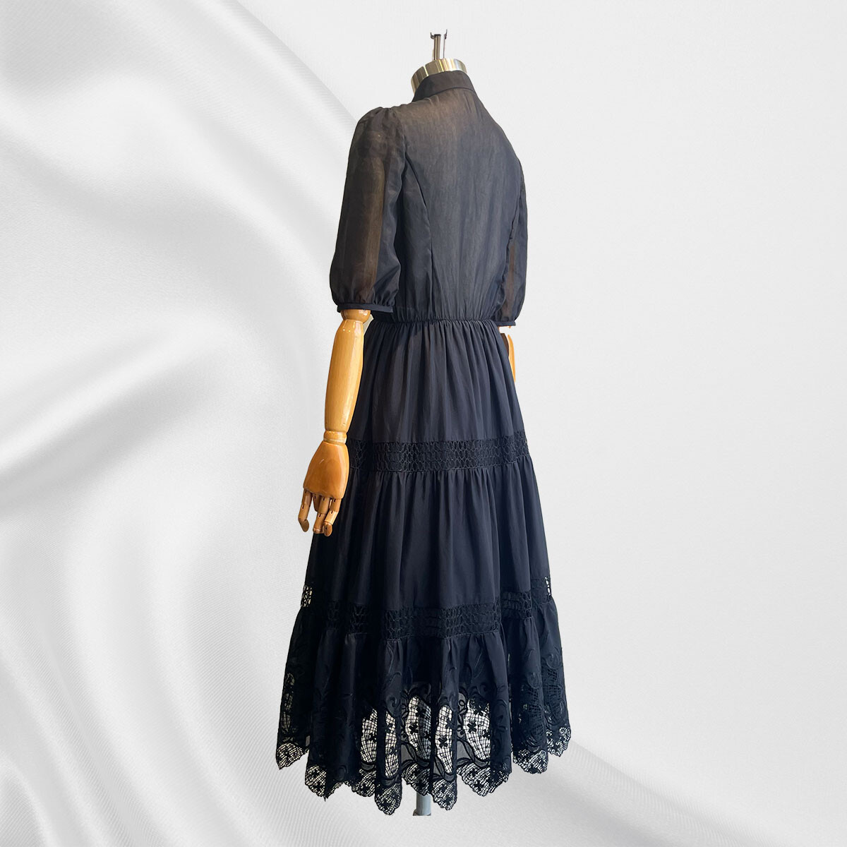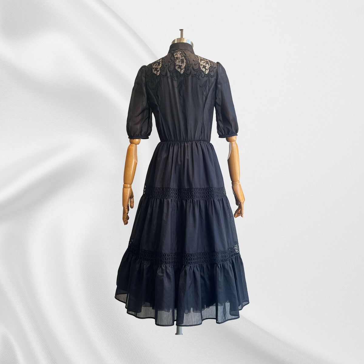刺繍が施されたコットンシルクの薄い透ける生地で制作しました。