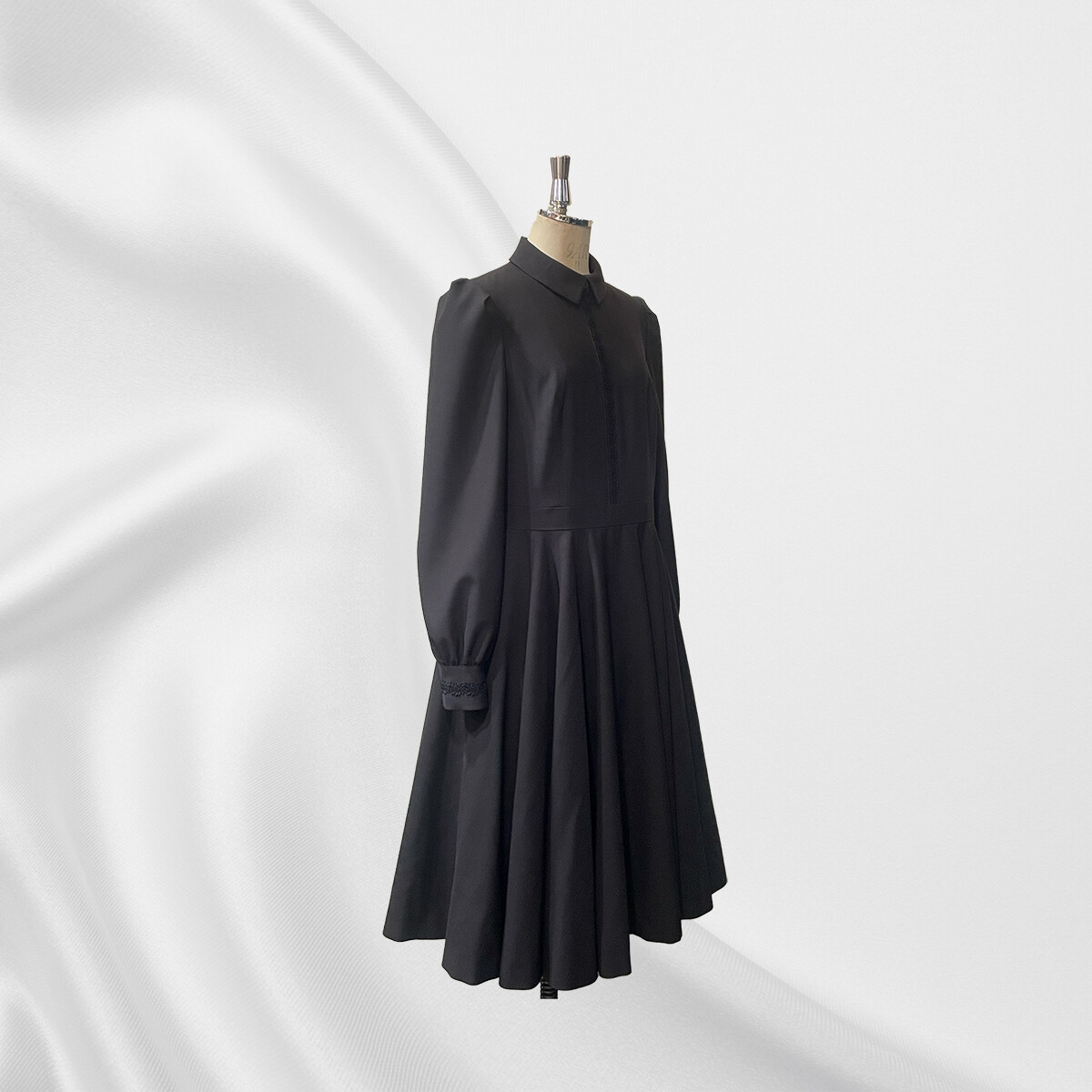 サーキュラー以上のたっぷりフレアーのワンピースです。