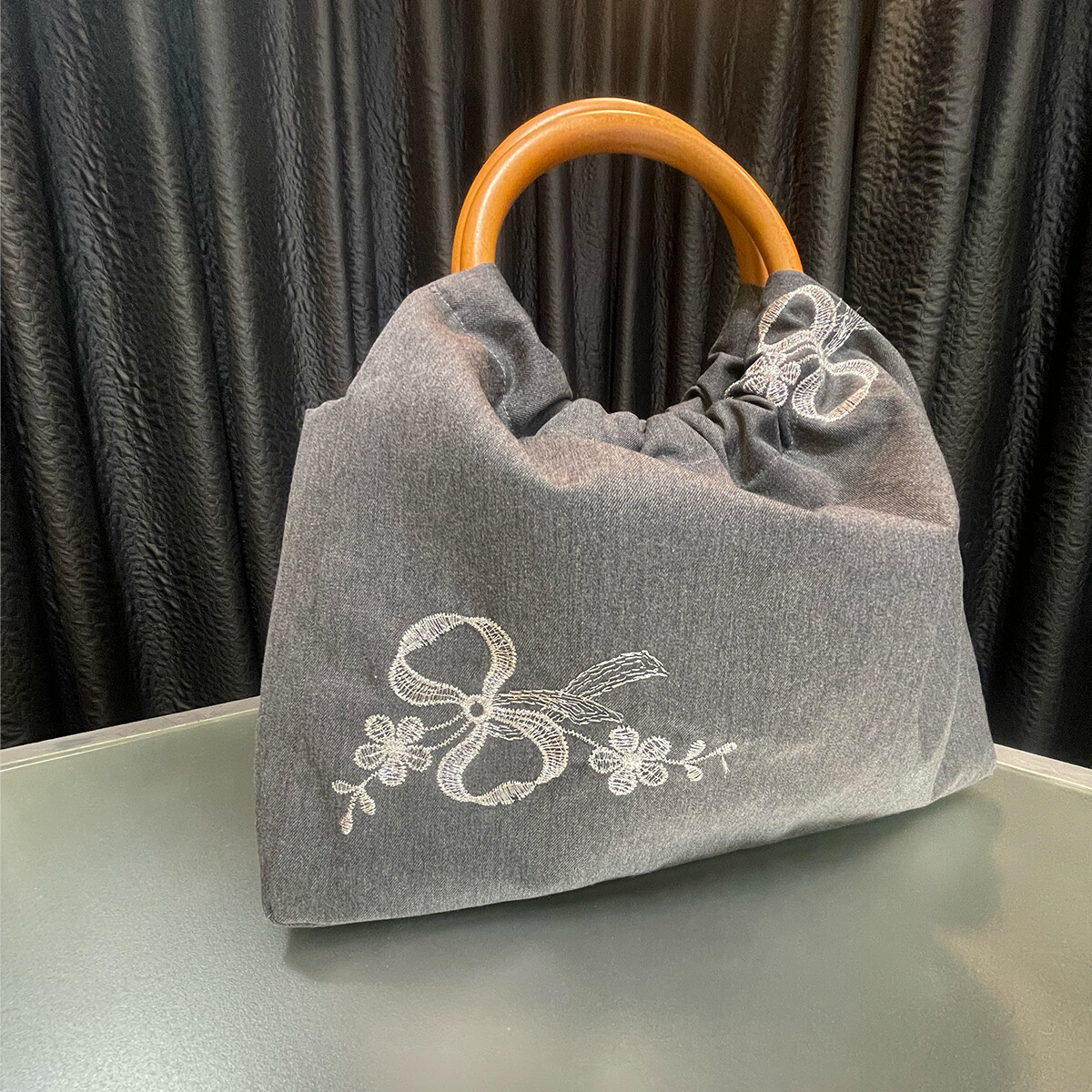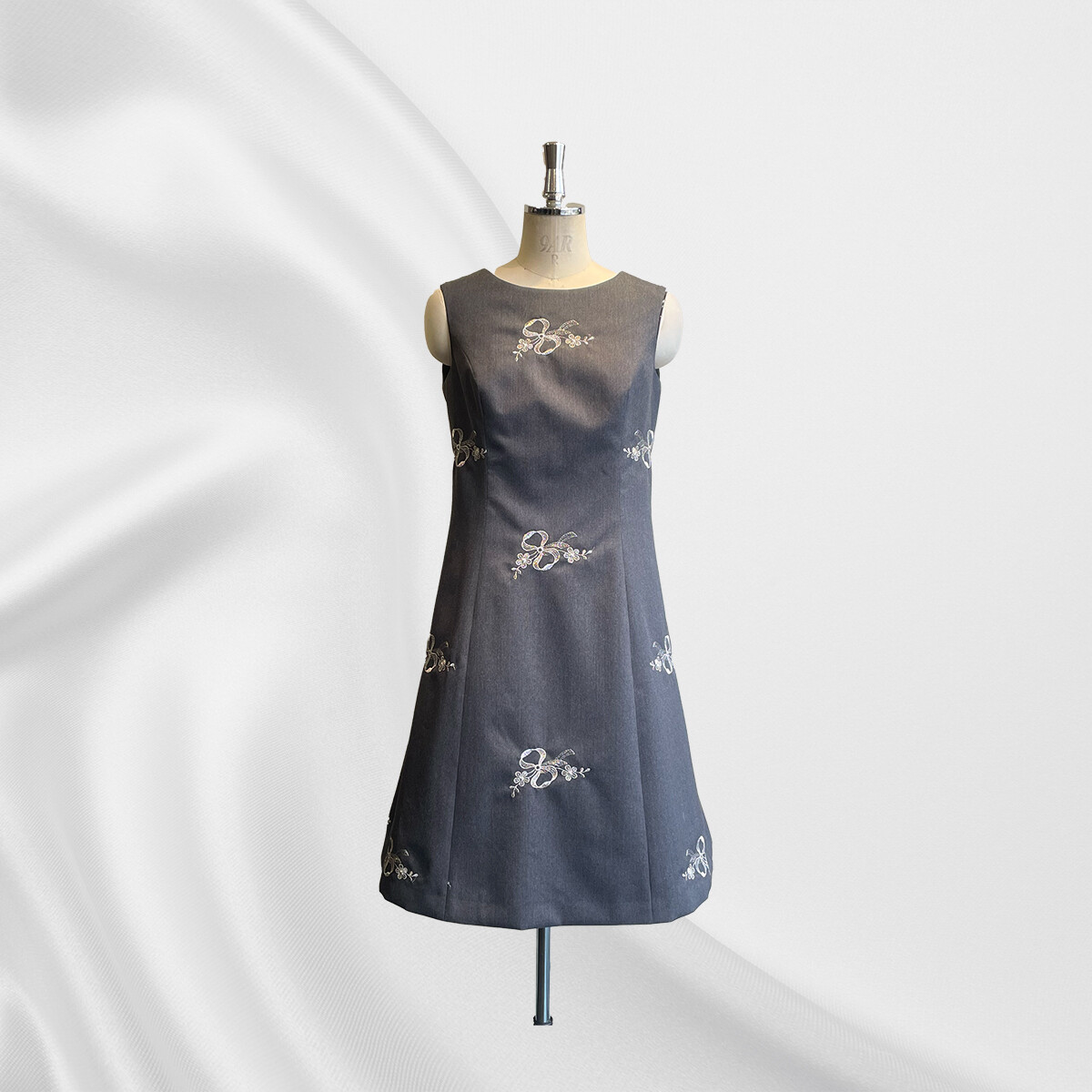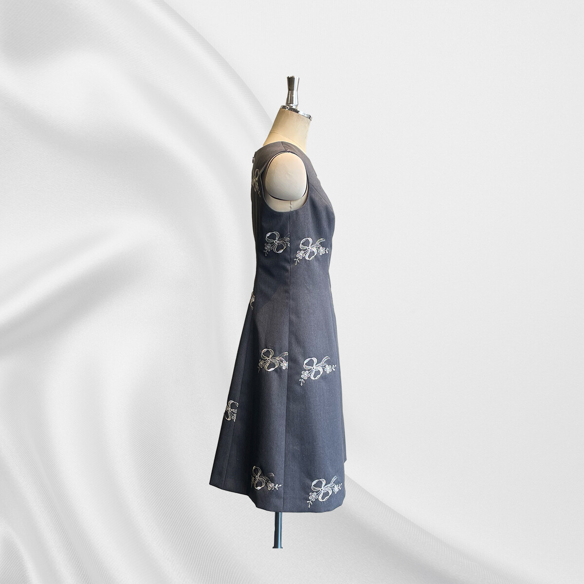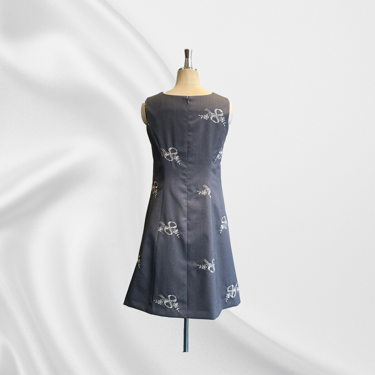 ウールにシルバーのラメ糸でリボン刺繡が施されたイタリア製の生地をお選び頂き、