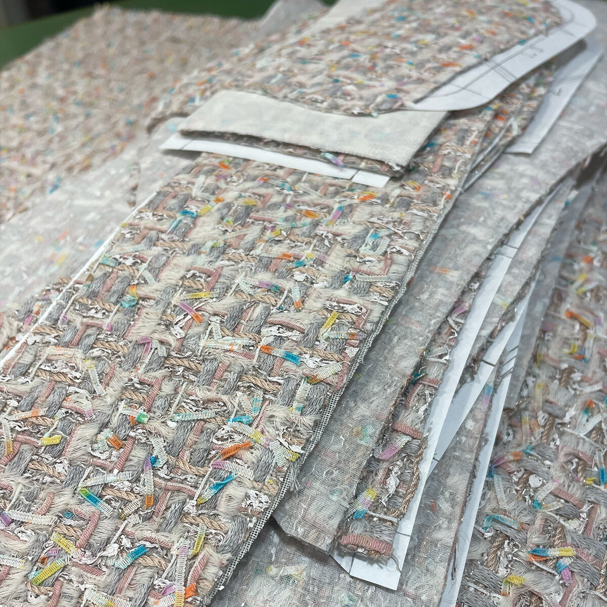 自由が丘Komatsuアトリエには、デザイナーKomatsuがコレクションしてきた素敵な生地をストックしております。ご予算に合わせて、デザインに合った生地をご提案させていただきます。