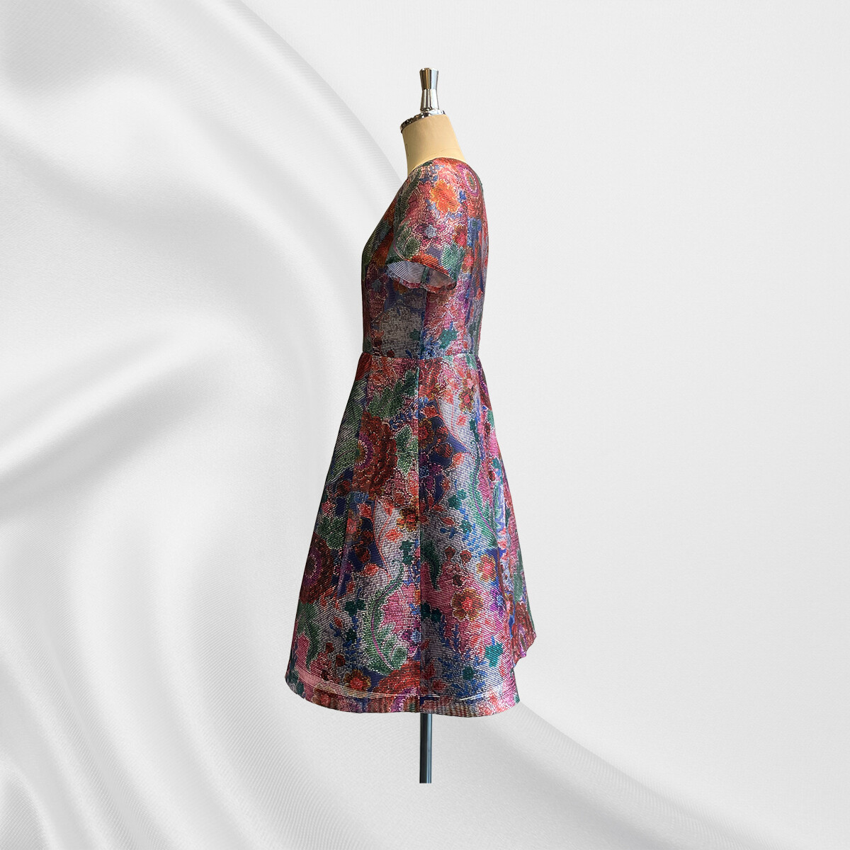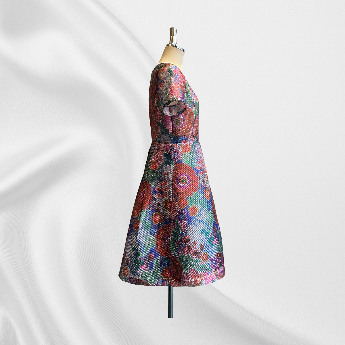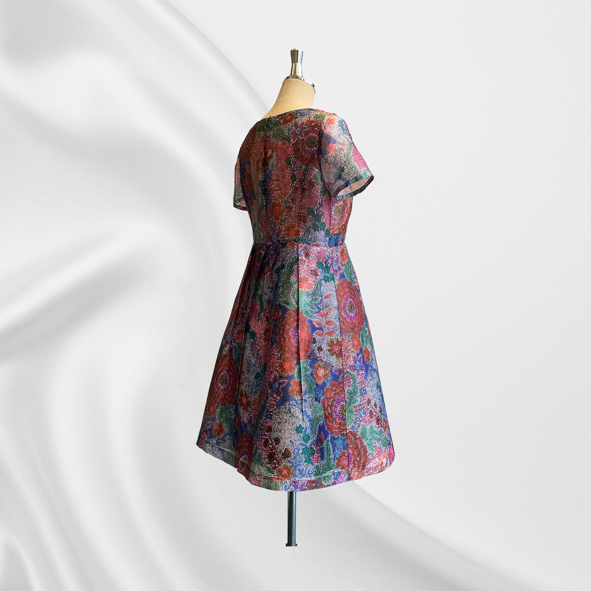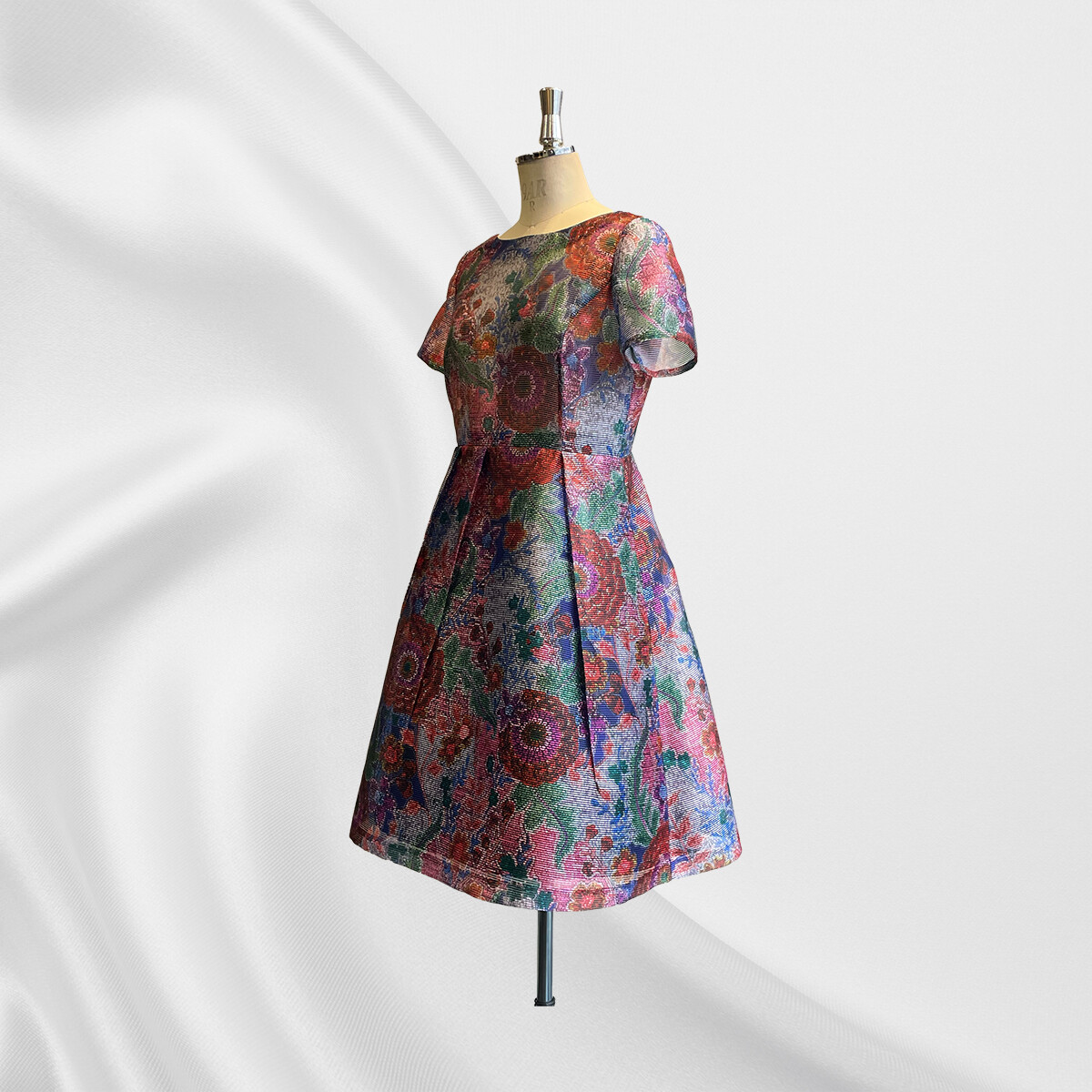 生地の良さが際立つ様、スカート部分のみに裏地をつけて制作しました。