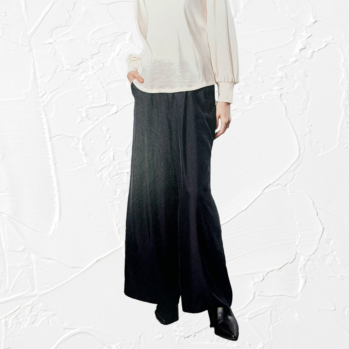 リラックス感のあるワイドパンツ。