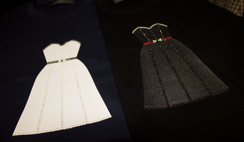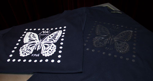 昨晩、15周年の記念に 「ドレス」 と 「蝶」 のスペシャルT-シャツを作りました。